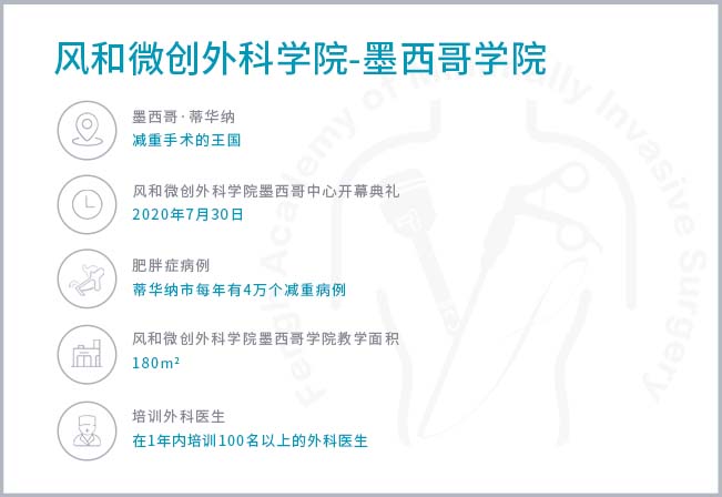 墨西哥蒂华纳是风和微创外科学院第一个减重外科培训中心,所有的课程都是由专业领域的知名教授团队领导,其中首席教授有Almino C. Ramos教授和Sergio Verboonen 教授。风和微创外科学院高级外科培训课目前主要有两大类的课程,向具有不同背景和经验的外科医生,分别开展针对性的学习课程。